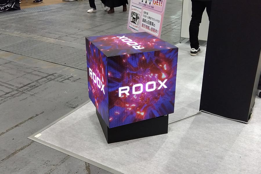 壁面の大画面レインボービジョンの他、頭上に透過型のシースルービジョン、床置きのキューブビジョンといった特殊型のLEDビジョンを設置。