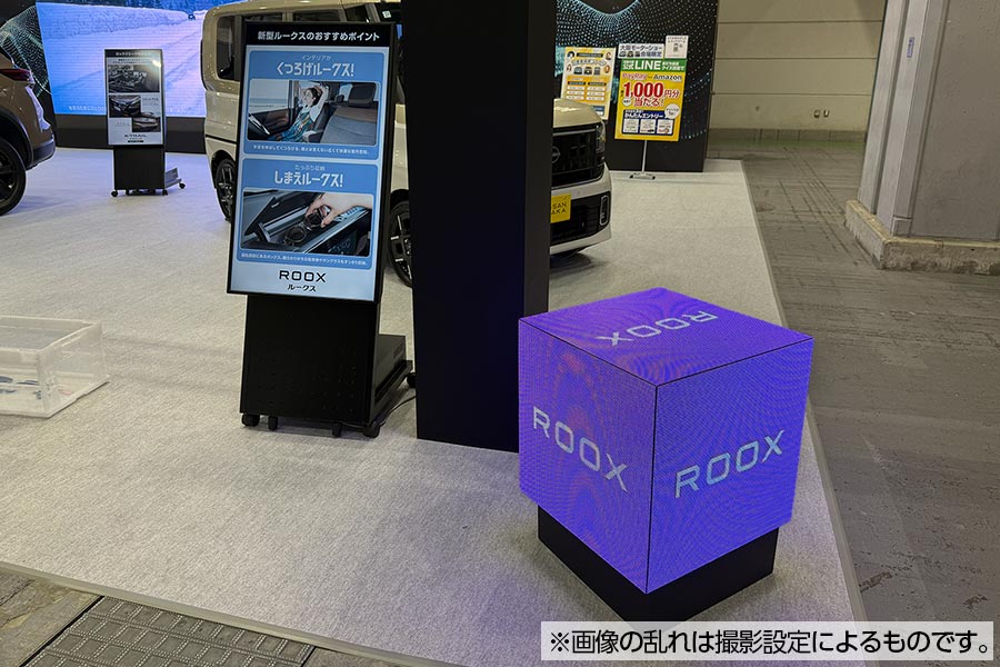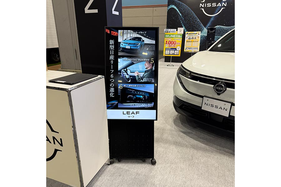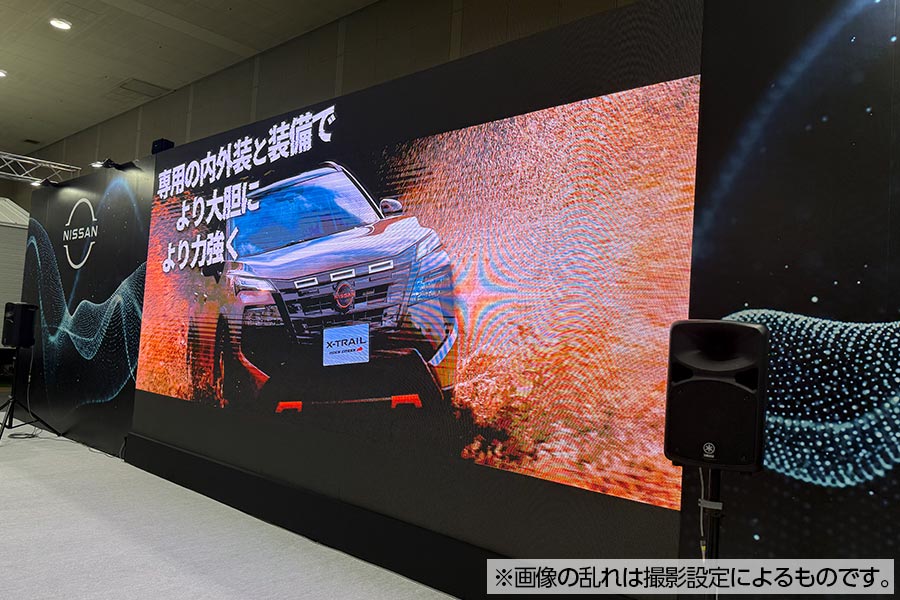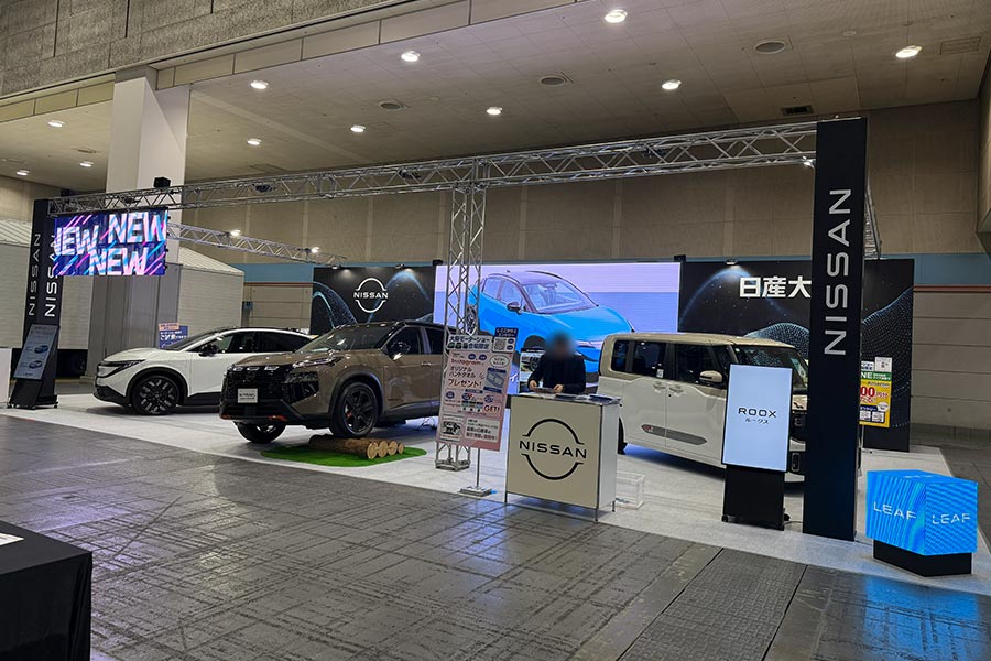 - 『Japan Mobility Show Kansai 2025 第13回大阪モーターショー』に出展された日産大阪様ブースにて、レインボービジョンシリーズとデジタルサイネージをレンタルでご導入いただきました。
